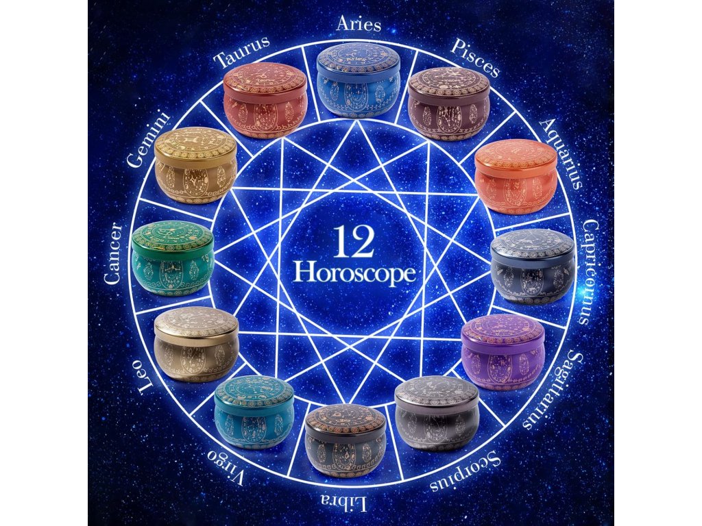 - 【Přenosné a nádherné svíčky】 Každá vonná svíčka má nádobu s jedním z 12 vzorů souhvězdí, vhodných pro zdobení vašeho domova nebo ukládání drobností po použití. Například ukládání náušnic do šperků nebo jako dekorativní květináče.