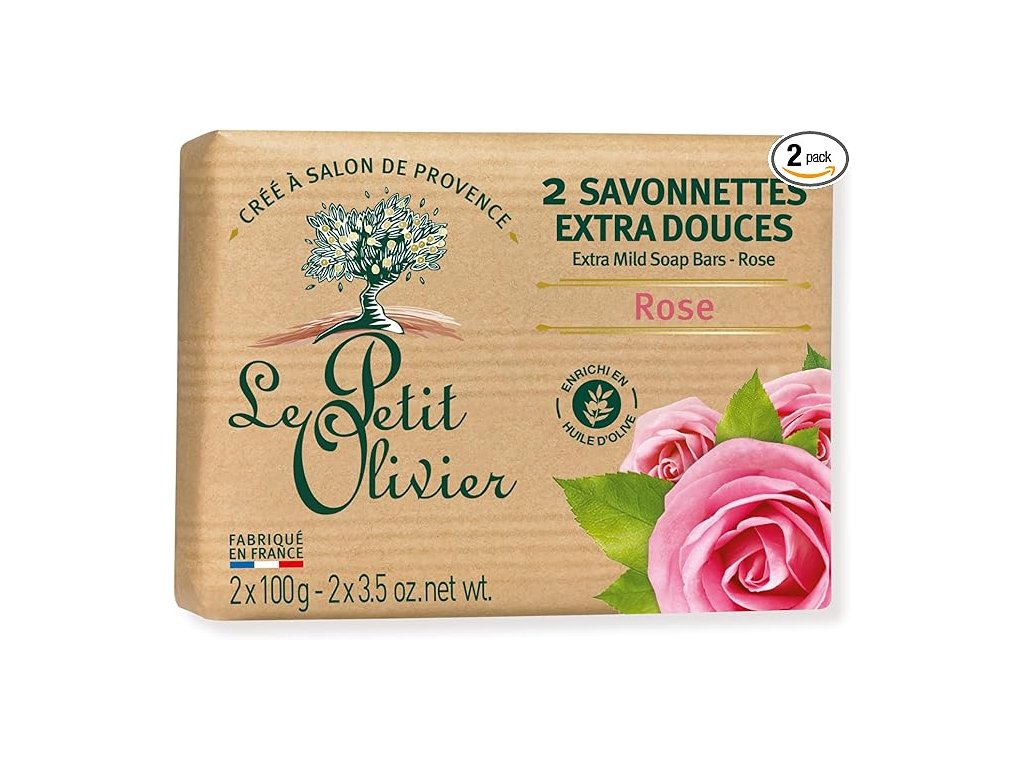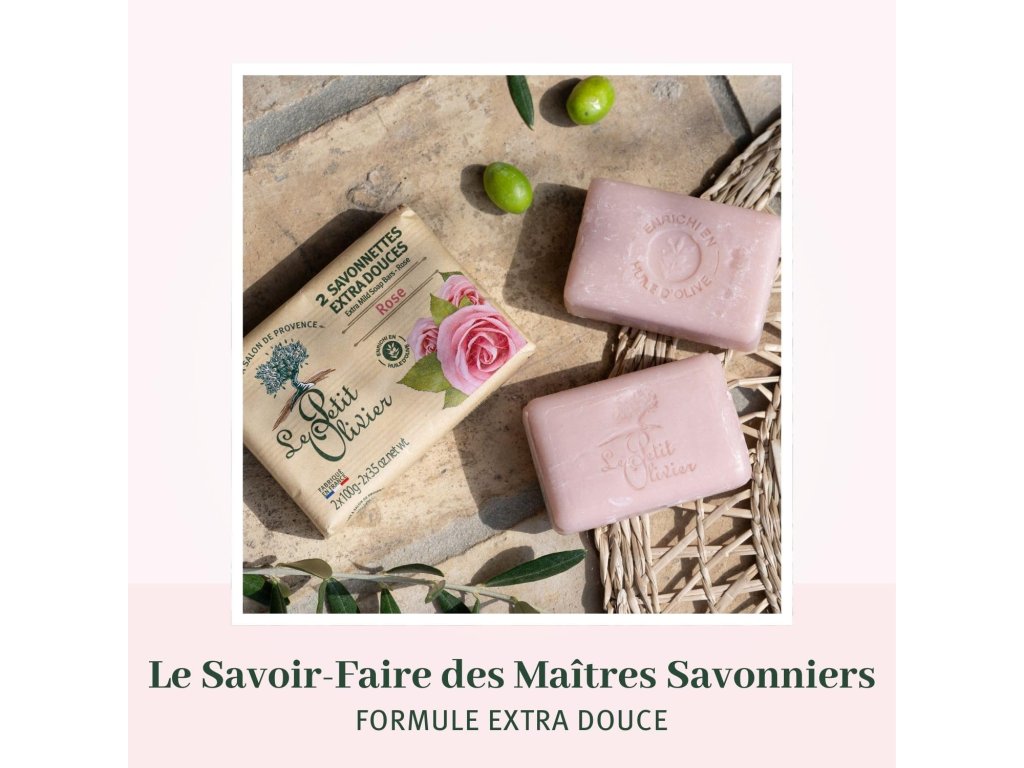 LE PETIT OLIVIER - 2 extra jemná mýdla - růžová - vůně z oblasti Grasse - jemně čistí pokožku - vyrobeno ve Francii - 2x100g