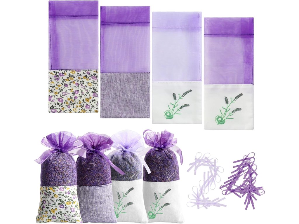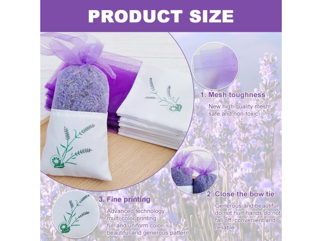 bavlněné fialové gázové sáčky se stahovací šňůrkou a levandulí