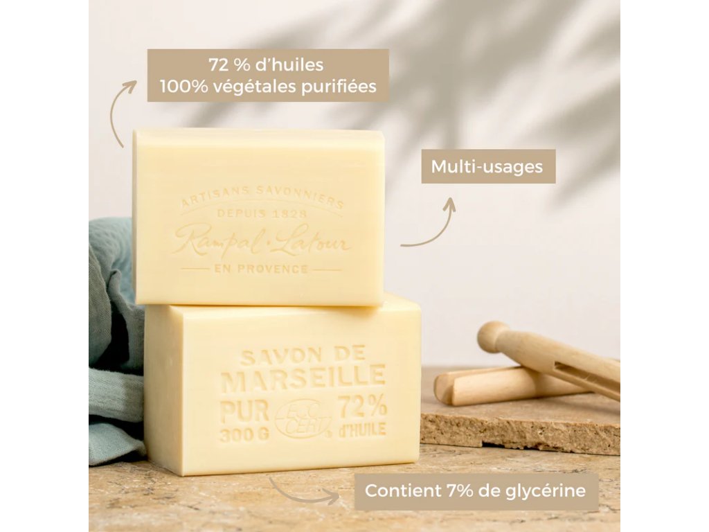 Marseillské mýdlo s rostlinnými oleji je hypoalergenní a hydratační. Rozhodli jsme se zachovat glycerin produkovaný přirozeně při zmýdelnění. Pravděpodobně se ptáte, co je glycerin? Je to prostě zvlhčovadlo, které najdete ve svém hydratačním krému a ve většině vašich kosmetických produktů. Jeho úloha: hydratovat pokožku a chránit ji před vnějšími vlivy.