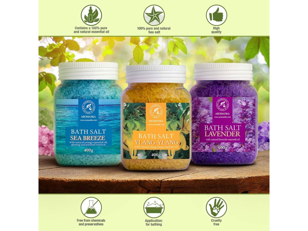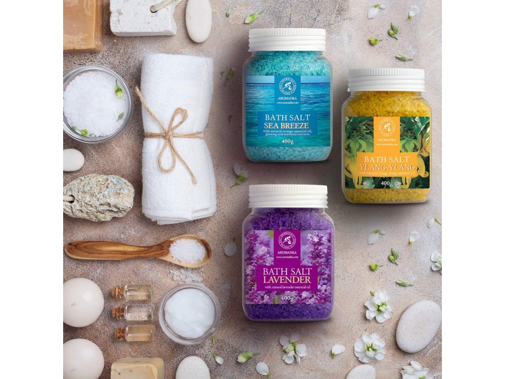 - Postarejte se o své zdraví a krásu se sadou 3 koupelových solí levandule, mořský vánek a ylang-ylang!