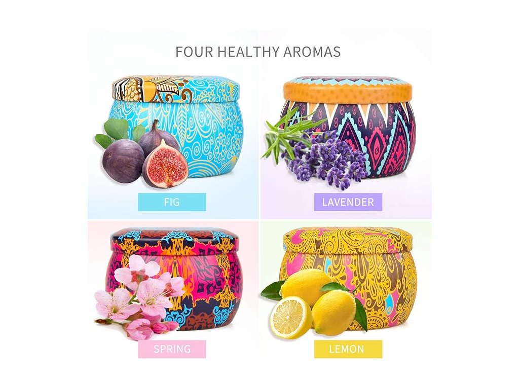 - ★ 【4 PARFÉMOVÉ VŮNĚ MINI CESTOVNÍ SVÍČKY】 vůně růže, levandule, citronu a středomořských fíků pro negativitu, nežádoucí energie, čistí, čistí a zahání