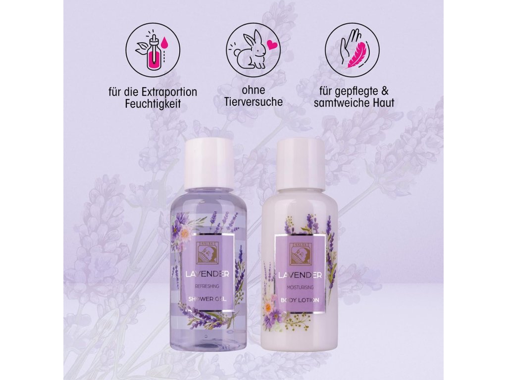 - Produkty s vůní levandule rozmazlují pokožku dostatkem vlhkosti, díky čemuž je měkká a pružná. Všechny produkty jsou zabalené v elegantní dárkové krabičce, pečlivě zdobené dárkovou mašlí.